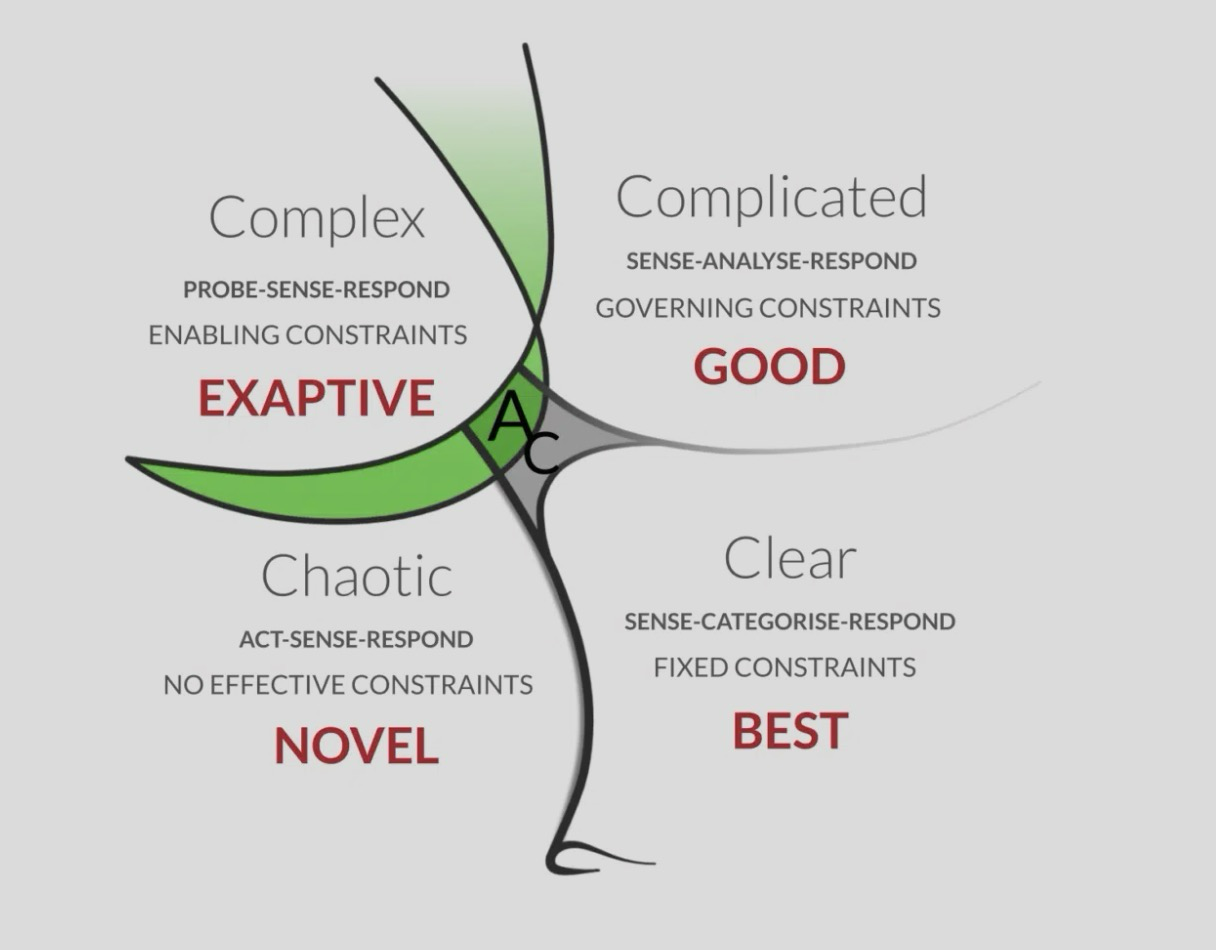 Complexity is not just about things being hard to comprehend and analyse, but also the non-determinism of behaviours and outcomes. The Cynefin framework distinguishes between complicated and complex to further clarify the concept of complexity. Complicated domains fall in the known-unknowns space, where we can identify knowledge gaps and find experts or comprehensive documentation to bridge those gaps. Complex domains reside in the unknown-unknowns, where we can't identify those gaps without experimentation. Cause-and-effect relationships are not apparent in complex domains and can only be discerned retrospectively.