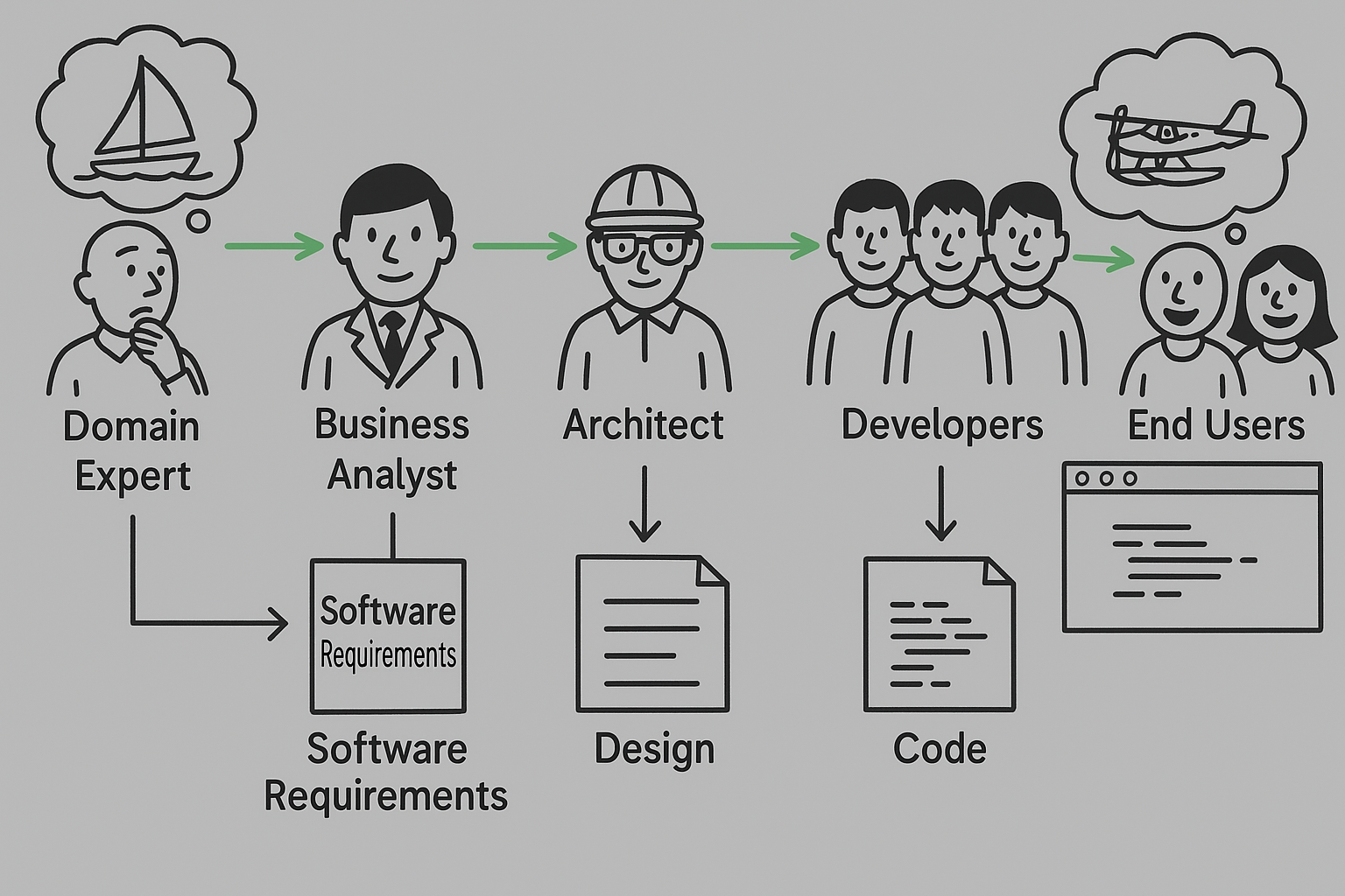 It is common in organisations to have developers so far removed from the problem that they rely on third, fourth, or even fifth-hand information that barely resembles the original need. They then interpret this information in their own way, adding their own assumptions and misunderstandings before delivering it to the customers. It is akin to a game of Chinese whispers.